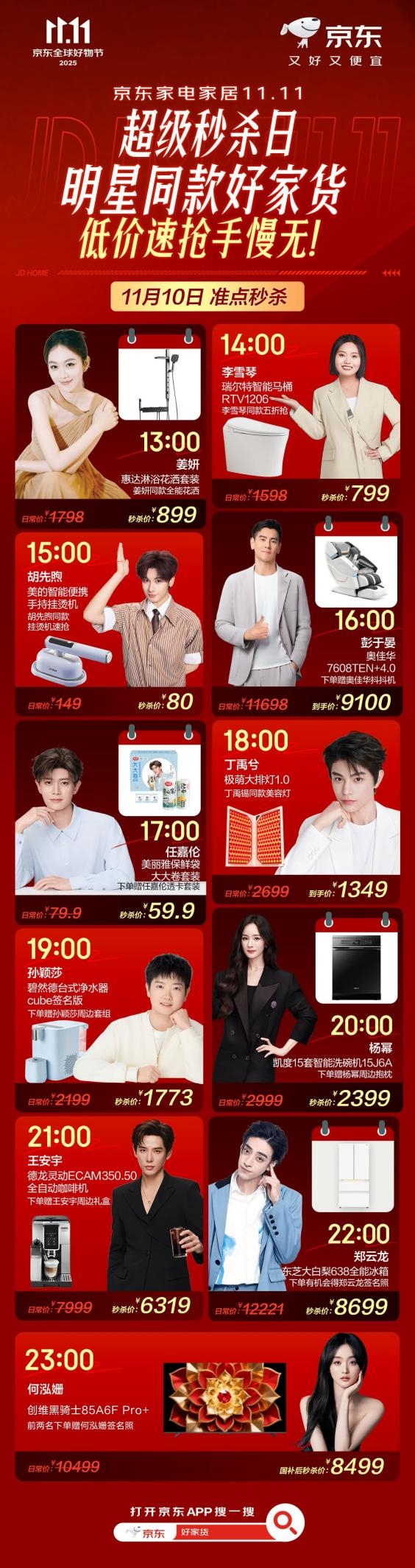 11月10日京东家电家居超级秒杀日开启 明星同款好家货不止5折