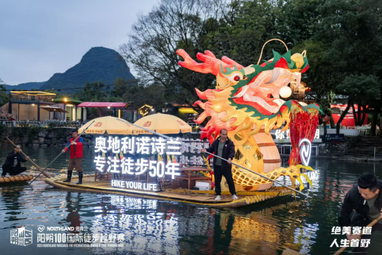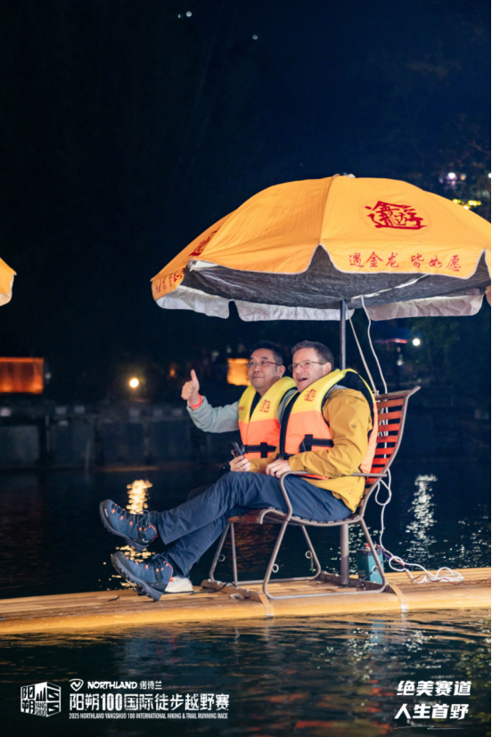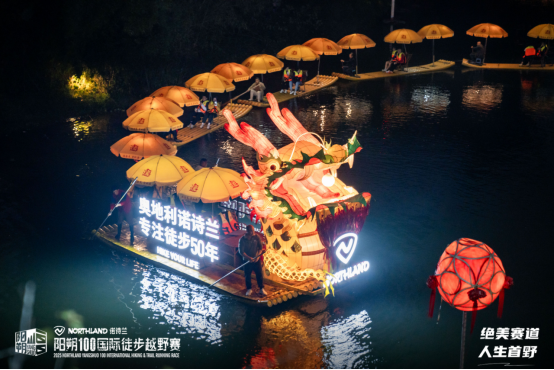 11月8日晚,遇龙河上千米金龙游动。由75张竹筏串联的“金龙巡游”,让光影与山水交织,成为一场独属于东方的户外盛宴。奥地利驻华大使馆公使吴浩然、奥地利驻华大使馆商务参赞 Mr. Franz R,奥地利旅游局负责人贾珊与NORTHLAND诺诗兰选手们,共同登上竹筏畅游遇龙河,共庆赛事并对赛事组织与品牌理念给予高度认可。